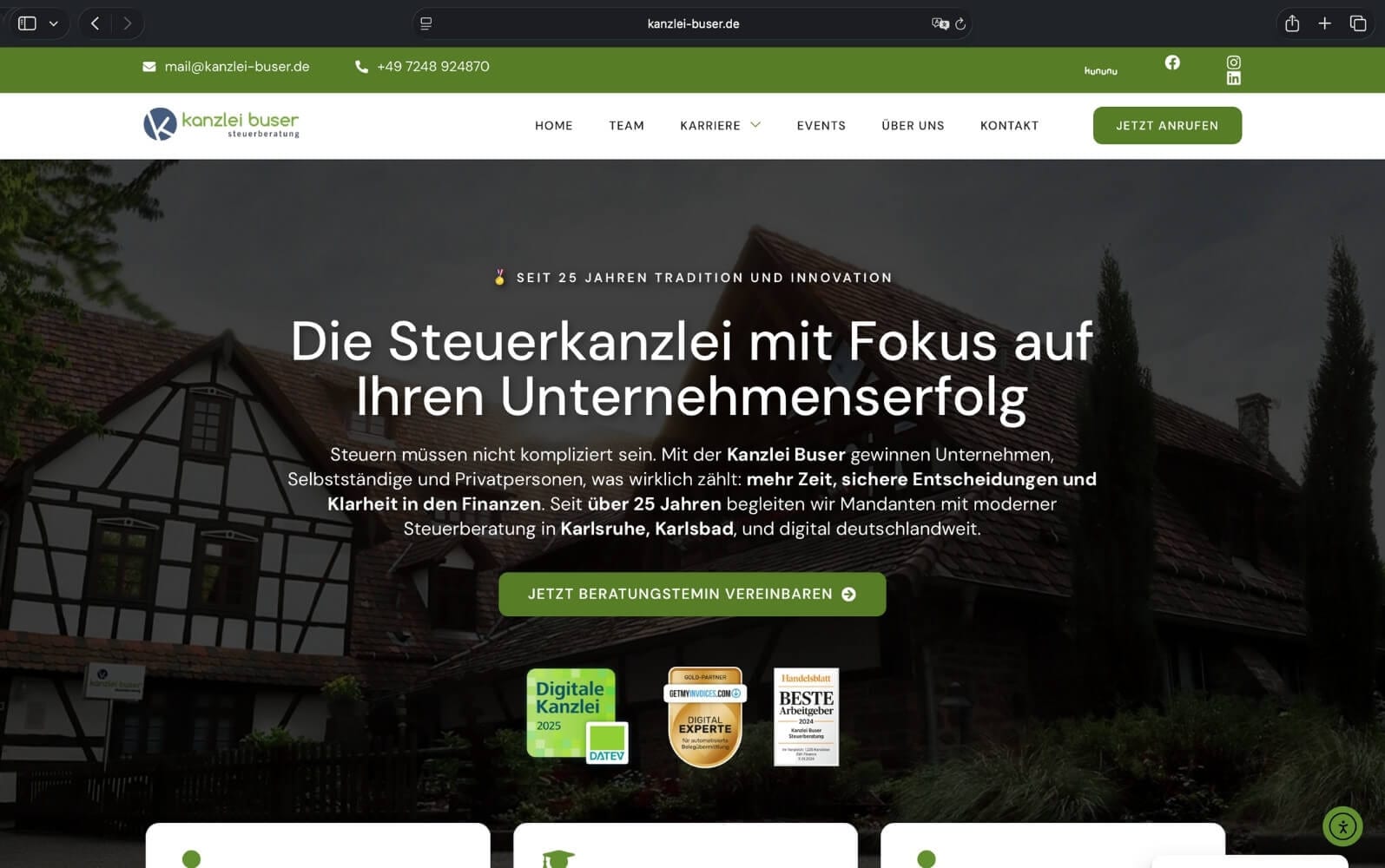 Das könnte deine neue Website sein, mit allem was dazu gehört. Eine echte Live-Seite aus einem Kundenprojekt.